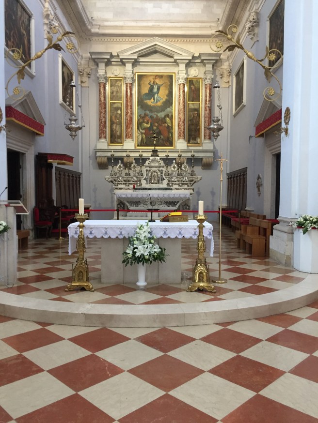 The Dubrovnik Cathedral is a beautiful Baroque and Byzantine style building. It was founded by Richard the Lionhearted in gratitude for his life being saved during a violent storm. When I inquired about Mass times at both churches, I was told that a church around the corner had an English speaking one. I explained that I love attending services in the local language because I always feel something special. That made the young man smile.